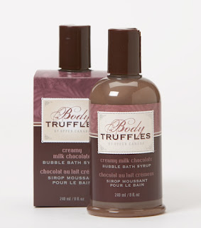 We take our time to light our very expensive scented candles, and then we have such a decision to make as to which bubble bath to use. Hmm... I think Body Truffles will do, Decadent Chocolate mint, bubble bath syrup. Imported from Canada. I will soak in chocolate. (can't eat it anymore, unless it is dark chocolate) All the while I enjoy an equally expensive glass of red wine, (I take the whole bottle to the bathroom, just in case you know)